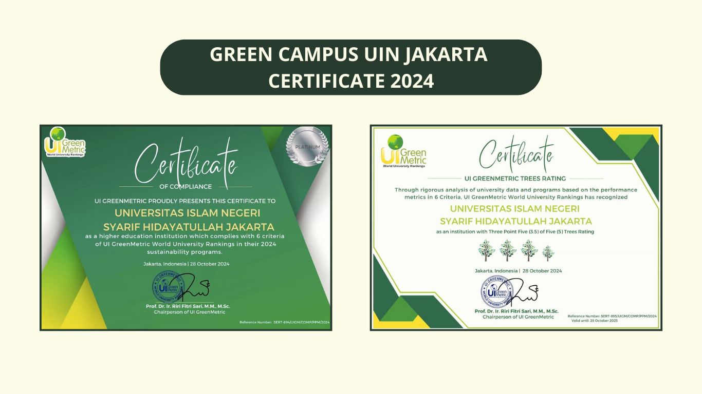 Green Campus UIN Jakarta adalah inisiatif strategis yang bertujuan untuk menciptakan lingkungan kampus yang lebih hijau, berkelanjutan, dan ramah lingkungan. Melalui program ini, UIN Jakarta menerapkan berbagai langkah ramah lingkungan, seperti pengelolaan energi, konservasi air, pengelolaan limbah, dan penyediaan transportasi berkelanjutan. Kampus memanfaatkan energi terbarukan, mendorong penghematan air, dan memfasilitasi daur ulang sampah untuk mengurangi jejak ekologis. Selain itu, UIN Jakarta juga mempromosikan kesadaran lingkungan melalui riset, pendidikan, dan keterlibatan civitas akademika dalam kegiatan berbasis keberlanjutan. Dengan berbagai upaya ini, UIN Jakarta berkomitmen menjadi institusi pendidikan yang mendukung pelestarian lingkungan sekaligus menginspirasi mahasiswa dan masyarakat untuk hidup lebih selaras dengan alam.